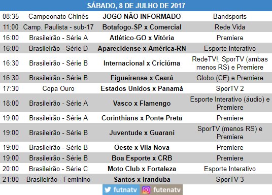 FUTEBOL NA TV - SÁBADO, 08 DE JULHO DE 2017